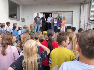 Vor allem ging es darum, die Gewinnerinnen und Gewinner eines Postwettbewerbs auszuzeichnen oder auszulosen. Denn im Vorfeld hatte Ingo die Kinder besucht, und die Kinder hatten Briefe und Karten geschrieben. Darin schilderten sie ihre Urlaubserlebnisse, und dafür wandten sie Fantasie und Kreativität, Fleiß und Mühe auf. Mona Albert ist schließlich für die schönste Gestaltung ausgezeichnet worden. Sie bekam einen Gutschein vom Europapark selbst. Je einen Gutschein für Freibadbesuche im nächsten Jahr erhielten von Bürgermeister Holger Schäfer die Schülerinnen Cheyen Braun und Johanna Merten. Anna Krämer gewann einen Sonderpreis der Sparkasse. Der bestand aus auch aus einem Gutschein für den Besuch im Europapark in Rust. Zudem hat Paul-Lukas Wagner unabhängig vom aktuellen Wettbewerb jedem ABC-Schützen eine kleine Aufmerksamkeit der Sparkasse überreicht. Beteiligt waren nach Angaben von Posti-Ingo im Klassenverband die 2.2., 3.2, 3.3., 4.1 und 4.2.