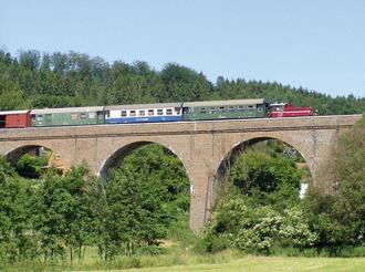 Am 3. Oktober fährt die Ostertalbahn durch das herbstliche Ostertal.