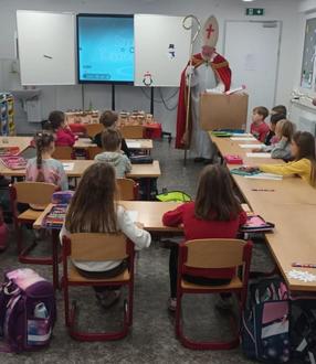Auch in diesem Jahr besuchte der Nikolaus die beiden ersten Klassen der GS Neumünster. Gespannt warteten die Kinder auf den Besuch. Man hörte in der Schule schon seine Glocke. Als er dann an der Tür klopfte und eintrat, sahen ihn die Kinder mit großen Augen an. Der eine oder andere sogar mit offenem Mund. Der Nikolaus freute sich sehr über die vorgetragenen Gedichte und Lieder. Natürlich wusste der Nikolaus auch einiges über die Klassen zu berichten. In seinem goldenen Buch standen Dinge, an denen die Erstklässler noch arbeiten müssen, aber natürlich auch viel Positives. Zum Schluss verteilte er noch an alle Weckmänner und wünschte eine schöne Adventszeit sowie ein besinnliches Weihnachtsfest.