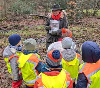 Annette Jürgens vom Lernort Natur der Kreisjägerschaft Ahrweiler brachte den Kindern der Kita Esch den Wald näher.
