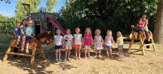 GRAFSCHAFT-RINGEN. Schöne Überraschung für die Kinder der Kindertagesstätte „Unterm Regenbogen“ in Grafschaft-Ringen. Der Förderverein der Kindertagesstätte „Unterm Regenbogen“ sorgte wieder einmal für strahlende Kinderaugen. “Schau mal da, Felix, da steht ein Pferd auf dem Flur“, so oder so ähnlich waren die Worte der Kinder, als sie die sehnlichst gewünschten Spielpferde entdeckten und in Augenschein nehmen konnten. So dauerte es nicht lange, bis die erste „Sitzprobe“ und ein erster „Ausritt“ gemacht wurde. Durch den im Frühjahr dieses Jahres äußerst erfolgreich durchgeführten Nachtflohmarkt, die großzügigen Spenden bei den Kindergartengrillfesten sowie den Mitgliedsbeiträgen des Fördervereins war es möglich, drei langersehnten Holzspielpferden ein neues Zuhause zu schenken.