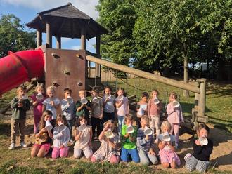 Die schlauen Füchse der Kita Leimersdorf mit ihren kunstvoll gestalteten Megaphonen