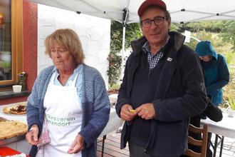 Immer wieder öffnete sich die Ofentür zur Entnahme von duftenden Köstlichkeiten und die Kundschaft im vorderen Teil des Backhauses staunte über das lodernde Feuer. Alle Gäste wurden zügig bedient und kamen auf ihre Kosten. Wie das engagierte Vereinsmitglied Lela Staden bemerkte: „Wir haben hier ein super harmonisches Team“.