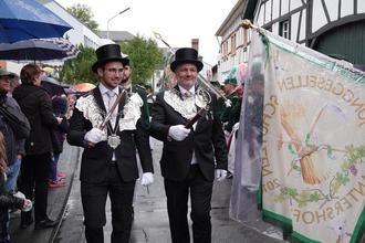 König Nils Henscheid (l.) und Silberjubilar Werner Braun schritten die Front ab.