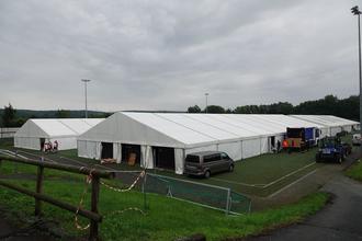 Vier große Hilfszelte hinterließen am Sportplatz Leimersdorf Schäden in Höhe von 1,6 Millionen Euro.