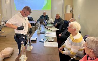 In der anschließenden Fragerunde kristallisierte sich heraus, dass gerade bei Senioren die Erste-Hilfe-Kurse schon lange zurückliegen. Einiges hat sich verändert oder aber die richtigen Maßnahmen im Notfall sind nicht mehr allgegenwärtig. Das Deutsche Rote Kreuz stellte daher seine Auffrischungskurse vor, die ganz speziell auf die Belange der älteren Generation zugeschnitten sind. Zu den Kursinhalten zählen unter anderem das richtige Verhalten bei Schlaganfällen, Atemnot, Herzinfarkt oder nach Stürzen. Die erfahrenen Ausbilder gehen aber auch auf die Hilfe bei Verbrennungen und Verbrühungen ein, üben die aktuelle Seitenlage und erklären nochmals das Absetzen des Notrufs. Der Kurs dauert zweimal 90 Minuten.