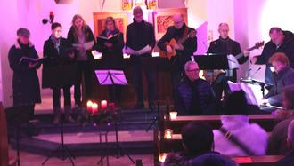 Bei Kerzenschein und farbiger Illuminierung der Kapellen-Faltengewölbedecke erklang zu Beginn "Advent ist ein Leuchten" von Lorenz Maierhofer. Danach konnten sich die über 50 Zuhörer am kraftvollen Gospelsound von "Shepherds, Run", komponiert von Markus Detterbeck, einem zeitgenössischen deutschen Komponisten und Chorleiter, erfreuen.