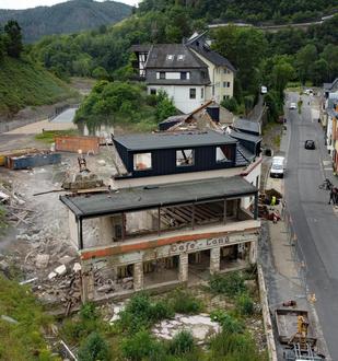 Das Cafe Lang in Altenahr mit dem Kristallspielgelsaal ist nun Geschichte. Die Fluten der Ahr im Jahr 2021 haben dem Traditionshaus den Garaus gemacht. Wie es heißt, wird aber wieder aufgebaut.