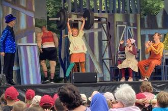AHRBRÜCK.OC. Am Dienstag, 23. August, gastierte das Ensemble der Landesbühne Rheinland-Pfalz, Schlosstheater Neuwied auf einer kleinen Freilichtbühne auf dem großen Parkplatz in Ahrbrück. Pippi Langstrumpf, das freche Mädchen mit den karottenroten Zöpfen, verzauberte das junge Publikum mit ihren Streichen. Pippilotta Viktualia Rollgardina Schokominza Efraimstochter Langstrumpf, wie sie vollständig heißt, zog mit ihrem Affen „Herr Nilsson“ und ihrem Pferd „kleiner Onkel“ in die Villa Kunterbunt, wo sie auch gleich ihre neuen Freunde, die Geschwister Tommy und Annika, kennenlernte. Gemeinsam erlebten die drei eine Menge Abenteuer, die von den kleinen Zuschauern gebannt verfolgt wurden: Auf dem Jahrmarkt besiegte Pippi, das stärkste Mädchen der Welt, den starken Alfons und erhielt dafür ein hohes Preisgeld an Goldtalern. Dies wiederum lockte zwei üble Ganoven auf den Plan, die aber von Pippi unter dem Gelächter des Publikums ausgetrickst wurden. Ein ähnliches Schicksal ereilte die trotteligen Polizisten Kling und Klang, die Pippi in ein Kinderheim übergeben wollten. Als die beiden vor den Augen von Tommy und Annika von Pippi aus der Villa Kunterbunt geschmissen wurden, tobten die kleinen Zuschauer vor Lachen! Auch in der schwedischen Dorfschule brachte die agile Pippi die Lehrerin mit ihrer eigenen Ansicht von „Plutimikation“ ins Schwitzen. Fein rausgeputzt erschien sie hingegen beim Kaffeekränzchen von Tommys und Annikas Mutter, jagte mit fehlenden Manieren die anderen Gäste jedoch schnell in die Flucht. Als am Ende Pippi’s Vater Efraim mit seinem Schiff „Hoppetosse“ auftauchte, nahm der Spuk einen guten Ausgang. Was für ein schöner Nachmittag! Vielen Dank dem Kulturverein Mittelahr und dem ProBüro für Jugendarbeit, die die Gratisaufführung so toll organisiert hatten. Als Eintrittskarten wurden die Kinder mit einer Süßigkeit und einem kühlen Getränk begrüßt.