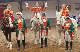 KALENBORN. Das ganze Jahr über bringt das Team um Vanessa Kirsch mit den braven Schulpferden Kindern und Erwachsenen auf dem Hegehof geduldig das Reiten bei. Aber einmal im Jahr geht es hoch her, da beweisen sie zusammen mit der Kavallerie der Godesberger Stadtsoldaten ihr unglaubliches Showtalent! Unter dem Motto „Herz ist Trumpf“ legte die Kavallerie am Sonntag eine rasante Quadrille aufs Parkett bzw. auf die Reitbahn. Temporeich gerittene Figuren zum Takt schmissiger Schlager mit Herz und Schmerz – gemäß des diesjährigen Mottos des Godesberger Karnevals – versetzten das Publikum in Begeisterung. Zu dem Event der Godesberger Stadtsoldaten hatten sich traditionell Mitglieder befreundeter Gesellschaften, ein pferdebegeistertes Publikum und natürlich der karnevalistische Adel eingefunden.