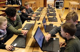 Die Schüler der Klasse 9a erläuterten den kleinen Gästen die Arbeit am Laptop.