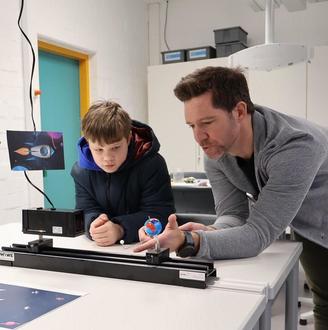 Physiklehrer Oliver Zorn (r.) nahm die Besucher mit auf eine spannende Reise durch das Weltall.