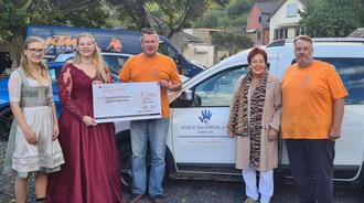 Auf dem Winzerfest in Mayschoss gab es eine freudige Überraschung für die Weinkönigin Ronja und ihre Prinzessin Laura. Denn bei der Verlosungsaktion des Vereins „Kohle fürs Ahrtal“ am Dernauer Winzerfest, bei dem auch die Weinmajestäten die Lose gezogen hatten, war ein Betrag von 2500 Euro zusammengekommen. Der Hauptgewinn ist das Promo-Auto mit vielen Unterschriften bekannter Personen aus Sport und Kultur. Der Betrag wurde jetzt an die Weinkönigin Ronja und Prinzessin Laura überreicht. Diese 2500 Euro tragen dazu bei, das Kleinspielfeld für die Jugendlichen auf dem ehemaligen Sportplatzgelände zu finanzieren. Die stellvertretende Vorsitzende des Fördervereins „Zukunft-Dernau“ e.V. Ingrid Näkel-Surges bedankte sich bei den Vereinsvorsitzenden Joachim Klink und Dirk Penz für die großzügige Spende und für den bewundernswerten Einsatz und Idealismus des Vereins „Kohle fürs Ahrtal“ für die Menschen in der Flutregion. Im Übrigen wurde die Losnummer für das Promo-Auto bisher noch nicht gezogen. Es können also weiter Lose gekauft werden.