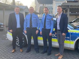 Begrüßung im neuen Amt: (v.l.) Ralf Durben (Leiter der Polizeidirektion Mayen), André Kirschner, Andreas Schäfer (Dienststellenleiter) und Pascal Rowald (Vorsitzender des örtlichen Personalrats).
