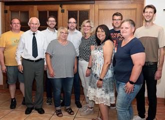 Der neue Vorstand (v. l.): Christian Kraatz (Beisitzer), Hermann-Josef Romes (Vorsitzender), Christian Frings (Stellvertretender Vorsitzender und Bereitschaftsleiter), Petra Schmitz (Schatzmeisterin), Michael Werner (Stellv. Bereitschaftsleiter), Heidi Arenz (Bereitschaftsleiterin), Karin Robertz (Stellv. Bereitschaftsleiterin), Thorsten Schug (Beisitzer), Dunja Schug (Beisitzerin), Adrian Deranja (Bereitschaftsarzt)