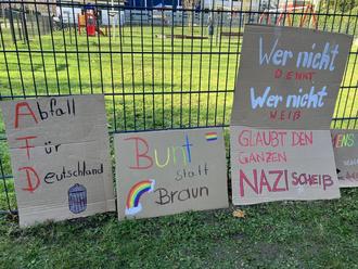 Mit bunten Plakaten sprachen sich die Teilnehmerinnen und Teilnehmer der Demonstration für vielfalt und gegen Rechtsextremismus aus.
