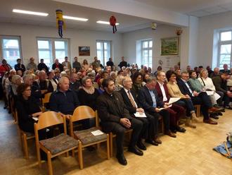 LÖHNDORF. DG. Löhndorf am 11.11.: Nein, diesmal nicht Beginn der 5. Jahreszeit! Pünktlich um 10 Uhr zog Ortsvorsteher Volker Holy die Leine an der von Mike Jacobeit präparierten Kanone und eröffnete mit drei Böllerschüssen damit offiziell den 27. Martinsmarkt. Und nach und nach strömte die Löhndorfer Bürgerschaft dann auch auf den Platz hinter der alten Schule, wo an verschiedenen Ständen ganz unterschiedliche Waren angeboten wurden. Die KiTa St. Georg bot unter anderem Deko-Artikel an, da gab es Kinderklamotten, Bastelsachen, Wärmendes für den Winter, und natürlich auch Ess- und Trinkbares. Ob geräucherte Forellen, Honig-Produkte und Backwaren. Döppekooche in verschiedenen Variationen und Reibekuchen lockten durch ihren markanten Geruch schnell hungrige Mäuler -man verzeihe mir diesen Ausdruck- an. Wem das alles noch nicht reichte, konnte sich vor der Schule am Frittenwagen verköstigen lassen. Und im Feuerwehrhaus gab es dann noch ein reichhaltiges Küchenbuffet. Der Duft von Glühwein verriet, dass langsam, aber sicher, der Winter Einzug hielt. Der vorübergehende Regen tat dem Ganzen aber keinen Abbruch, die Besuchenden fanden sich unter dem schützenden Zelt in angenehmer Atmosphäre zum Schwätzchen ein. Traditionell dann um 11 Uhr der Bürgerempfang, der in der ganzen Umgebung sicher einmalig ist, wie auch Bürgermeister Andreas Geron später konstatierte. Der „große“ Saal im alten Schulgebäude platzte förmlich aus allen Nähten, als Ortschef Volker Holy die Anwesenden begrüßte. Ein besonderer Gruß galt auch den Gästen aus der örtlichen Politik, MdL Petra Schneider und den Pastören Frank Werner und Manfred Müller. Holy sprach auch die lange Dauer bei den Genehmigungsverfahren bei den Baumaßnahmen KiTa und Feuerwehr kritisch an. Aber der Bürgerempfang setzt letztlich ja ein positives Zeichen im Dorfleben. Und dass es fröhlich zugehen kann, dokumentierte anschließend der MGV Liederkranz mit seinem Dirigenten Julian Thiem gleich beim ersten Lied: „Ein lustiges Leben“. Später folgten noch „Tage wie diese“, „Auf uns“ und „Frei wie der Wind.“ Und dass es wirklich fröhlich zugehen kann, bewiesen die Pänz von der Löhndorfer KiTa bei ihrem schon zur Tradition gewordenen Singspiel der Mantelteilung durch St. Martin. „Wir gehen kaputt an Vorschriften und Bürokratie“, beklagte auch Geron die Verfahrensdauer bei Baumaßnahmen. Zum Thema der diesjährigen Ausstellung hob er die positiven Aspekte der Ferienfreizeit hervor, die im Rosendorf seit nunmehr 40 Jahren angeboten werden. Nun war es an Friedhelm Münch, die Ausstellung im Dachgeschoss etwas näher zu beleuchten. Sein besonderer Dank galt denen, die bei der Vorbereitung mit dabei waren. Die unzähligen Fotos der vergangenen vier Jahrzehnte lieferten einen spannenden Einblick in die vielfältigen Maßnahmen. Manch einer wird sich auf den Bildern selbst wieder erkannt haben. Einige der Organisatoren berichteten kurz von ihren eigenen Erfahrungen bei den ganz unterschiedlichen Maßnahmen. Kritisch wurde hierbei aber auch angemerkt, dass die Gestaltung von Ferienfreizeiten den etwas geänderten Vorstellungen der heutigen Generation angepasst werden muss. In seinem Schlusswort sprach der stellvertretende Ortsvorsteher Guido Korth noch einmal seinen Dank für alle Mithelfenden aus. Und wie in Löhndorf eben üblich, standen am Ende alle auf und sangen die Nationalhymne.