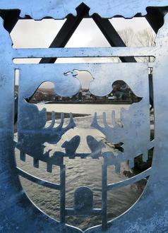 SINZIG. Bei einem Gang über die neue Brücke an der Ahrmündung ergeben sich auch neue Perspektiven. Bilder von der Brücke in Blickrichtung Rhein werden in Zukunft über den Brückenaufbau gefertigt, ohne das bisher gewohnte Holzfachwerk im Vordergrund. Es geht aber auch etwas tiefer. In der Hocke kann durch das verzierte Seitenteil hindurchfotografiert werden. Dabei erscheinen die Ahrmündung, der Rhein und Linz mit der katholischen Pfarrkirche St. Martin im Hintergrund. — Foto: Rolf Niemeyer
