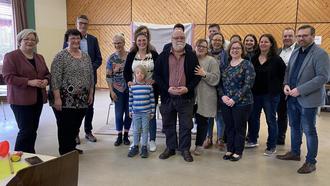 Paul und Lisa Neumann gemeinsam mit den aktuellen Vorstandsmitgliedern, den kommunalpolitischen Vertreterinnen und Vertretern sowie langjährigen Weggefährten