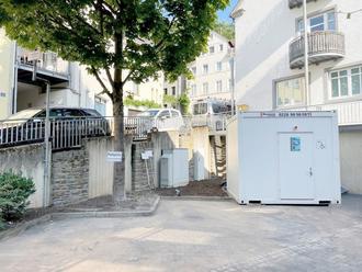 Bei der Sanierung der öffentlichen Toilettenanlage am Moselufer beim Marktplatz war im Gebäude kein ausreichender Platz, um eine Toilette für Personen mit Behinderung einbauen zu können. Für einen Anbau fehlte nicht nur die entsprechende Fläche. Auch wasserwirtschaftliche Vorschriften standen einem Bau hier oder an der Fußgängerbrücke im unmittelbaren Hochwassergebiet entgegen. Bei drohendem Hochwasser hätte der Container rechtzeitig abgetrennt und mit einem Kran entfernt werden müssen. Und nachher entsprechend wieder aufgebaut. Dies ist in der Praxis nicht umsetzbar und wirtschaftlich nicht darstellbar.
