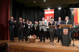 Nach der Übergabe der Urkunde zur Versetzung in den Ruhestand folgten noch weitere Grußworte zu Ehren von Bürgermeister Simon: Heike Raab, Staatssekretärin in der Staatskanzlei Rheinland-Pfalz, Landrat Manfred Schnur, Ralph Spiegler, Präsident des Deutschen Gemeinde- und Städtebunds, Matthias Müller, Fraktionsvorsitzender der FWG Zeller Land, Jochen Hansen, Ortsbürgermeister der Gemeinde Blankenrath, Alfred Steimers, Bürgermeister der Verbandsgemeinde Ulmen, Thorsten Blank, Vorsitzender im Verband hauptamtlicher Bürgermeister sozialdemokratischer Bürgermeisterinnen und Bürgermeister in Rheinland-Pfalz e.V., Markus Hensler, Wehrleiter der Verbandsgemeinde Zell (Mosel) und Anke Steffens, Personalratsvorsitzende der Mitarbeiterinnen und Mitarbeiter der Verwaltung.