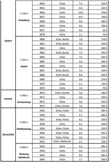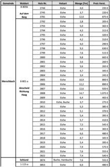 Die Preise für Laubhartholz liegen bei 73 €/Festmeter, die für Laubweichholz (inkl. Birke) bei 50 € / Festmeter. Mischpolter werden entsprechend der Baumartenzusammensetzung bewertet. Bei starkastigem, faulem oder mangelhaftem Holz wird der Preis angepasst.