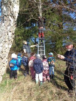 Am Mittwoch, den 4. März 2026, war es dann soweit. Mit Unterstützung vieler Ehrenamtlicher wurden die Nistkästen im Dorfwald angebracht. Nun sind wir alle sehr gespannt, welche Vögel dort einziehen.