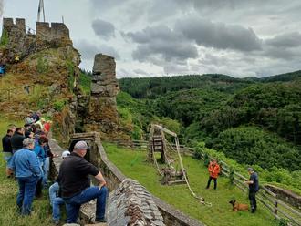 Am Samstag stand eine geführte Erlebniswanderung auf dem Programm, zu der auch jene Fördervereinsmitglieder willkommen waren, die nicht am Zeltlager teilnahmen. Die Route führte zunächst zur „Villa Romana“ in Veldenz, wo die Teilnehmenden bei einer kurzen Führung sowie einem Glas Wein oder alkoholfreiem Traubensecco einen ersten Zwischenstopp einlegten. Anschließend ging es weiter zum Schloss Veldenz, das ebenfalls besichtigt wurde. Nach der Rückkehr zur Grillhütte klang der Tag bei entspannter Stimmung aus.