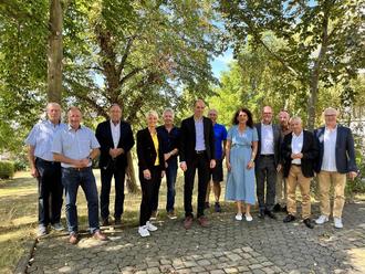 Vertreter des Aufsichtsrates der Hunsrück-Touristik GmbH - v.l.n.r. Alois Hansen (erster Beigeordneter VG Zell (Mosel)), Hartmut Heck (Bürgermeister VG Hermeskeil), stellvertretender Aufsichtsratsvorsitzender Gregor Eibes (Landrat Kreis Bernkastel-Wittlich), Andrea Etzkorn (Beigeordnete VG Simmern-Rheinböllen), Wolfgang Wagner (erster Beigeordneter VG Kirchberg), Aufsichtsratsvorsitzender Volker Boch (Landrat Rhein-Hunsrück-Kreis), Thomas Biersch (Vertreter VG Hunsrück-Mittelrhein), Vera Höfner (Bürgermeisterin VG Thalfang am Erbeskopf), Christian Keimer (Bürgermeister VG Kastellaun), Jörn Winkhaus (Geschäftsführer Hunsrück-Touristik GmbH), Manfred Schnur (Landrat Kreis Cochem-Zell), Karl-Heinz Erz (Beigeordneter EG Morbach)