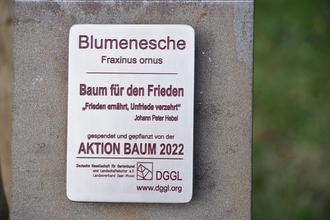 Am 12.11.22 wurde bei einer kleinen Feier im Garten der ev. Kirche in Thalfang unter Mitwirkung von Bürgerinnen und Bürgern, der sozialen Initiative Tatkraft in Thalfang, der Bürgermeisterin Vera Höfner, des Beigeordneten der Ortsgemeinde Thalfang Andreas Vochtel, der evangelischen und katholischen Kirche, des Caritasverbandes Mosel-Eifel-Hunsrück und des Pastoralen Raums Hermeskeil ein Friedensbaum gepflanzt. Diese Blumenesche - ein sogenannter Klimabaum - wurde nach einer Bewerbung durch Silvia Pfeiffer von der Deutschen Gesellschaft für Gartenkunst und Landschaftskultur e.V. der Kooperationsgemeinschaft Tatkraft in Thalfang gespendet.