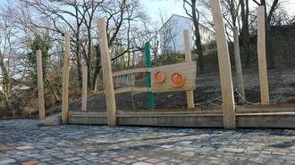 Neben Klettern und Rutschen gibt es auch ein Klangspiel auf dem Spielplatz Mainhöhe.