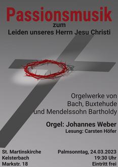 Auch in diesem Jahr werden wir am Abend des Palmsonntags, den 24. März um 19:30 Uhr in der Passionsmusik der Leiden Christi am Kreuz gedenken.