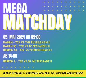 Den Mega Matchday im TCK gibt’s am Sonntag, 05.05. ab 09:00 Uhr.