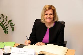 Nancy Faeser trägt sich ins Gästebuch der Stadt ein
