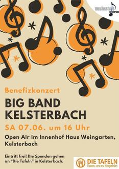 Die Big Band der Musikschule Kelsterbach veranstaltet am Samstag, 7. Juni, um 16 Uhr ein Benefizkonzert im Innenhof des Haus Weingarten (Lilienstraße 2). Die Big Band spielt sommerliche Swing- und Jazzmusik. Der Eintritt zum Konzert ist frei, Spenden sind erwünscht. Von dem gesammelten Geld werden Lebensmittel gekauft, die an „Die Tafel“ in Kelsterbach übergeben werden. (fis)