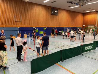 Am Sonntag, 4. Juni, freuten sich die für die Organisation verantwortlichen Marion Bauer und Lukas Steinmetz über etwa 100 begeisterte Teilnehmerinnen und Teilnehmer beim Tischtennis-Erlebnistag. Ab 14 Uhr war mächtig Betrieb in der Baugé-Halle.