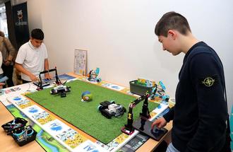Mit selbstgebauten Robotern ging es auf Torjagd.