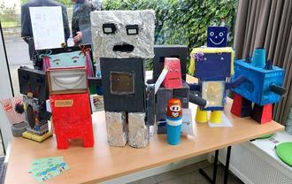 Schon am Vormittag waren viele, im Rahmen eines Kreativwettbewerbs gebastelte Roboter abgegeben worden.
