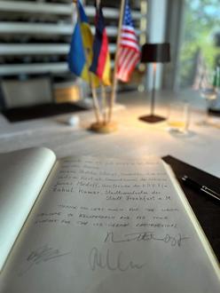 Das Treffen in Kelsterbach wurde auf Initiative von Medoff und Kumar organisiert. Beide waren bestrebt, weitere gemeinsame Synergien zu entwickeln, um zukünftig gemeinschaftliche Projekte zu gestalten und auszurichten. Ockel begrüßte die Initiative und betonte die bereits gute Zusammenarbeit mit Unternehmen wie Amazon und UPS, wodurch die positive Beziehung zu den USA weiter gestärkt werde. Die Stadt Kelsterbach sei stolz darauf, Gastgeber für dieses besondere Ereignis gewesen zu sein und freue sich auf eine enge Zusammenarbeit mit den Vereinigten Staaten in der Zukunft, so der Bürgermeister. Als symbolischer Abschluss des Treffens erfolgte die Eintragung der Teilnehmer in das Gästebuch der Stadt. (ka)
