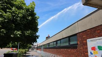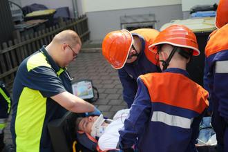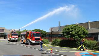 Erfolgreiche Rettung eines Dummies vom Dach der IGS
