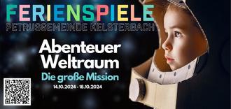 Die Herbst-Ferienspiele der Petrusgemeinde verwandeln alle Kinder von 6-12 Jahren in ein Astronautenteam, das gemeinsam auf Entdeckungsreise fliegt. Eine Woche lang wird geforscht, gebastelt, gespielt und natürlich zusammen gegessen. Es gibt jeden Tag eine spannende Geschichte aus der Bibel und die Kinder erleben in einem aufregenden Wettlauf gegen die Zeit, was es heißt als Team zusammenzuhalten.