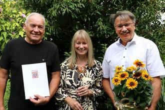 Bürgermeister Manfred Ockel (r.) gratulierten den Eheleuten Gisela (Mitte) und Jochen Werner (l.) zur Goldenen Hochzeit.