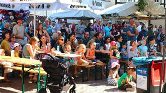 Neben Darbietungen des Square-Dance-Clubs Oakleaves und weiterer Tanzgruppen der TSG Flair sorgten auch die jungen Tänzerinnen von HipHop4Kids für Begeisterung bei den Zuschauern, die sich auf dem Marktplatz versammelt hatten. Auch in den Abendstunden war dies der beliebteste Treffpunkt, um gemeinsam das Wochenende und damit auch das Altstadtfest ausklingen zu lassen, wofür DJ Leonardo Aquino und DJ Etto den passenden Soundtrack lieferten. Mit einem Mix aus Dance-Hits und Pop-Klassikern servierten die beiden Tanzbeinfutter für fast jeden Geschmack.
