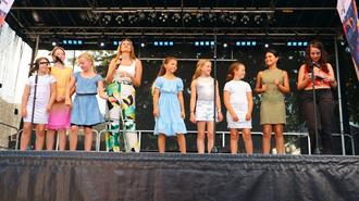 Nachdem die Rocker die Bühne verlassen hatten, war die Musikschule Kelsterbach dran und unterhielt mit ihrer Gesangsklasse eine Stunde ihr Publikum. Geleitet von Krista Ndoja gab es die pure Frauenpower, denn wie der Zufall es will, besteht die Gesangklasse ausnahmslos aus Mädchen. Den Anfang machte Sienna Marlene Urso, die im vergangenen Jahr den ersten Platz beim Wettbewerb „Der Kreis musiziert“ holte. Nach ihr kam Miriam Dahmane – sowie ein technisches Hindernis. „Dem Ipad ist zu heiß“ konstatierte der Musikschulleiter Marc Fischer, der die Moderation übernommen hatte. Nach einer nur kurzen Pause ging es weiter und die Playbackliste konnte über ein Mobiltelefon abgespielt werden. Dahmane nahm es gelassen und sang das Lied noch einmal von vorn. Insgesamt acht Mädchen gaben ihr Bestes und erzeugten viel Emotionen und Spaß. Auch ihre Dozentin Ndoja war bei jedem Lied mit Herzblut dabei, animierte die Mädchen, noch mehr aus sich herauszugehen und war sichtlich stolz auf ihre Schützlinge. Zum Ende nahm sie selbst das Mikrofon zur Hand und sang ein Lied, mit dem sie eine persönliche Botschaft ins Publikum schickte. „Rise Up“ solle jeden daran erinnern, immer an andere zu denken, anderen zu helfen, für andere da zu sein. Sie habe das Glück, jeden Tag mit so tollen Mädchen zusammenarbeiten zu können und dafür sei sie sehr dankbar, schloss die Gesangslehrerin und sang zum Abschluss gemeinsam mit ihren Schülerinnen noch das Lied „September“ von Earth, Wind & Fire. Ein gelungenes Finale, bevor es mit dem Abendprogramm weiterging.