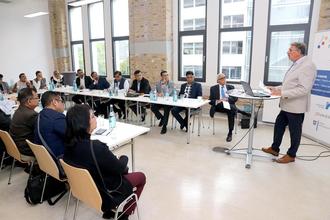 Manfred Ockel (rechts) begrüßte die indischen Gäste im Innovation Hub.