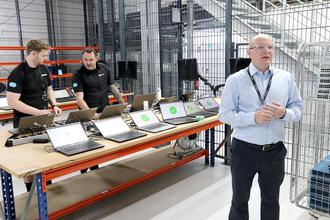 Giles Ward (rechts) erläuterte die technische Aufbereitung der gebrauchten Geräte.