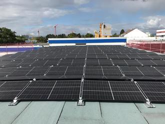 Der erste Bauabschnitt konnte im September nun fertiggestellt werden. Jeweils zwei Wochen dauerten die Sanierung der Dachhaut, die Montage der Solarmodule durch eine Fachfirma sowie die Elektroinstallationsarbeiten, die ebenfalls durch eine Fachfirma durchgeführt wurden. Die Anlage ist nun in ost-westlicher Himmelsrichtung angebracht.