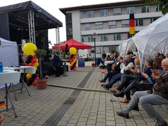 Goldenes Herbstwetter lockte rund 300 Besucher zur Festveranstaltung zum Tag der Deutschen Einheit am Montag, 3. Oktober, auf den Rathausvorplatz. Die Stadt Kelsterbach feierte mit ihren Bürgerinnen und Bürgern und präsentierte ein neues, fröhlicheres Konzept für den Nationalfeiertag. Auch eine entsprechende Verpflegung durfte nicht fehlen, die vom Kulturverein Kelsterkult gestellt wurde.