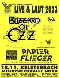 LIVE & LAUT 2023 mit Blizzard of Ozz Tribute to Ozzy und Papierflieger am 18.11.2023 in der MzH Nord