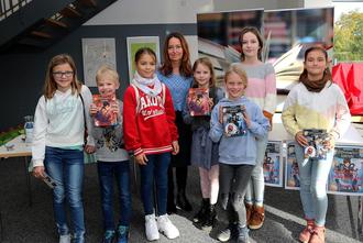 Als besonders glücklich erwies sich die zeitliche Nähe des Projekts zur Frankfurter Buchmesse. Dort war die in London lebende Autorin zu Gast, die daher vor ihrer Rückreise nach Großbritannien am Montag einen Abstecher nach Kelsterbach machen konnte. Zunächst gab es eine kurzfristig anberaumte Lesung, zu der neben den Podcast-Kindern auch die Schulkindbetreuungen der Karl-Treutel-Schule und der BHS eingeladen waren. Dabei trug Laban nicht nur Passagen aus dem ersten Band vor, sondern machte mit den Kindern auch ein Quiz, welchem der tierischen Protagonisten sie am ähnlichsten sind. Am Ende gab es die Möglichkeit, Fragen zu stellen und ein Autogramm von der Autorin zu erhaschen. Für vier der insgesamt acht Podcast-Kinder wurde es anschließend richtig spannend: Sie durften Laban für ihre „Bücheralarm“-Folge interviewen. Dafür hatten sie sich im Vorfeld Fragen über den Inhalt des Buches, aber auch über die Entstehung des Romans und das, was die Schriftstellerin zu der Geschichte inspiriert hat, ausgedacht.